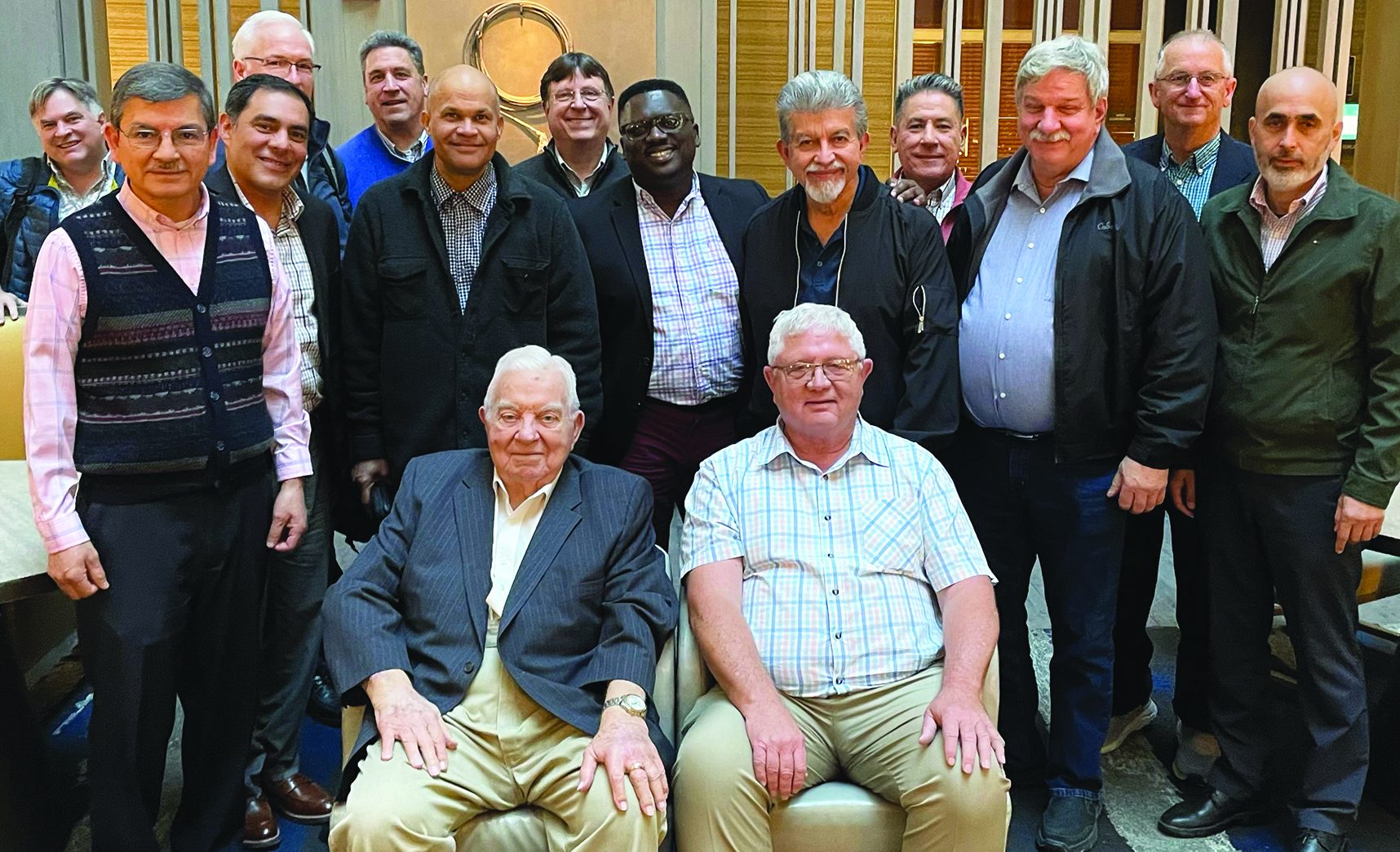 Después, el Anciano Coulter y su hijo, William, acompañaron a la mayoría de los participantes de la reunión del consejo a una cordial cena en un restaurante cercano. Aunque utiliza un andador para desplazarse, el Anciano Coulter mantiene la agudeza mental y se interesa por el progreso de la Conferencia General.